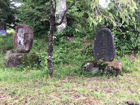 その原の茶屋の標識の前に右手から伸びてくる道路があります。これが旧甲州街道で、この先であの太陽光発電のパネルが拡がる敷地の中に入っていき、途中消滅しています。その「透関の馬頭観音像」が立っているのだそうです。この「透関の馬頭観音像」は天明元年(1781年)に立てられた三面六臂(顔が3つで腕が6本)のちょっと怖い形相の石仏なのだそうです。18世紀の終わりごろ、近隣の出身で、甲府の物産問屋の養子となり家業を隆昌して財を成した三井茂右衛門(号が透関)なる人物が、このあたりの甲州街道がぬかるんで通行するのにも難儀だったため、私財を投じて道を改修し、その完成記念に旅人の無事を祈って安置した石仏なのだそうです。